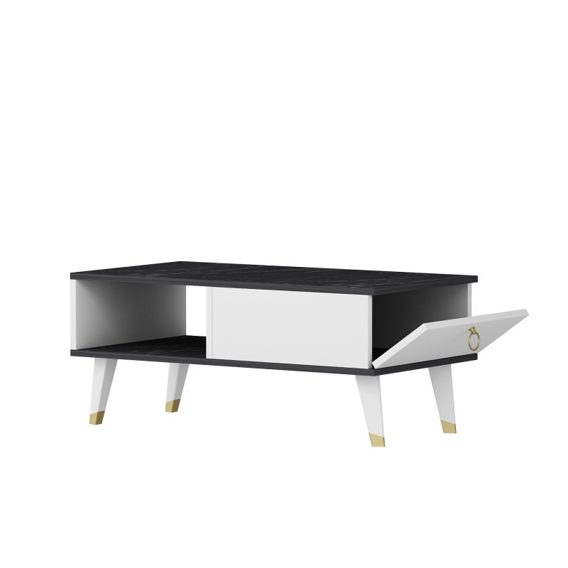 Τραπέζι σαλονιού Delux άσπρο μαύρο μάρμαρο μελαμίνη 90x45x42 4εκ ed5363