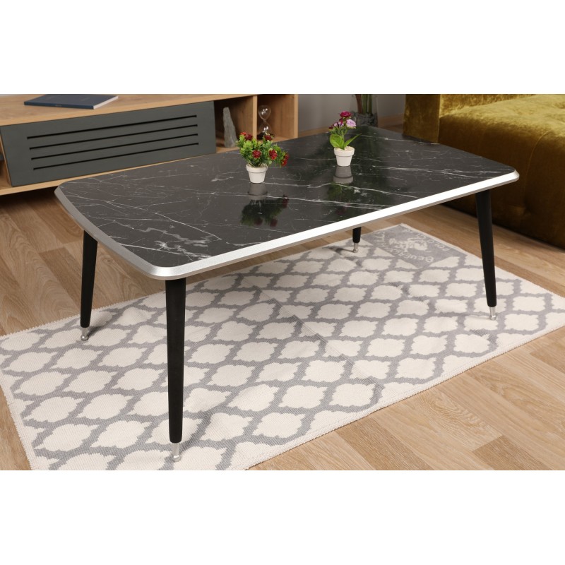 Τραπέζι σαλονιού Harry μαύρο μάρμαρο ασήμι μελαμίνη 100x53x42εκ ed7218