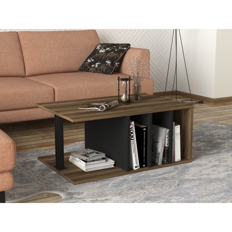 Τραπέζι σαλονιού Hilda καρυδί μελαμίνη μεταλλικός σκελετός 90x60x40εκ ed4535