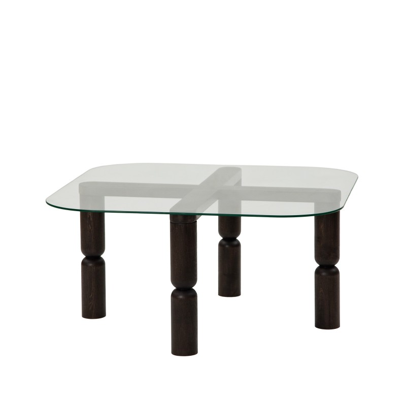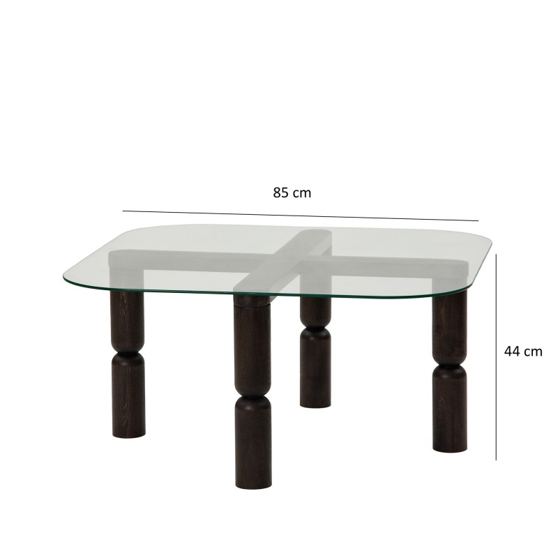 Τραπέζι σαλονιού Kei ανθρακί μασιφ ξύλο επιφάνεια γυαλί 80x80x40εκ ed16103
