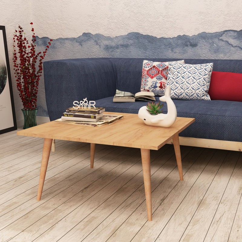 Τραπέζι σαλονιού Leyman δρυς μελαμίνη ξύλινα πόδια 80x80x42εκ ed7197