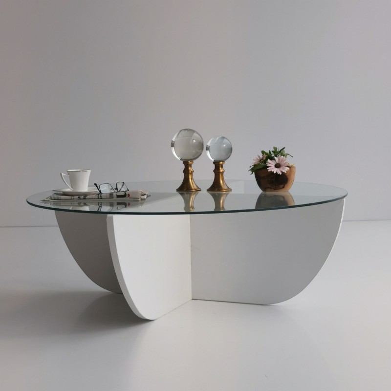Τραπέζι σαλονιού Lily άσπρο μελαμίνη επιφάνεια γυαλί 90x90x30εκ ed2671
