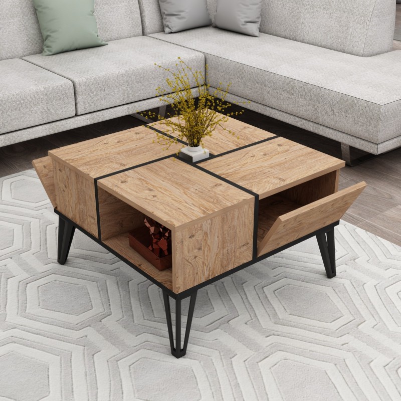 Τραπέζι σαλονιού Nirvana Atlantic Pine μελαμίνη μεταλλικά πόδια 71 8×71 8×43 8εκ ed14052