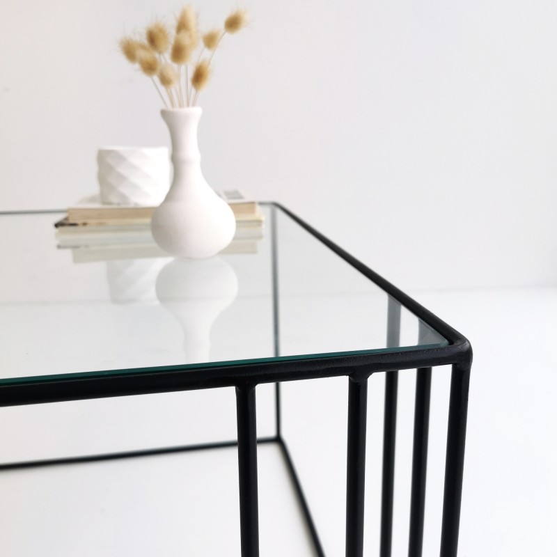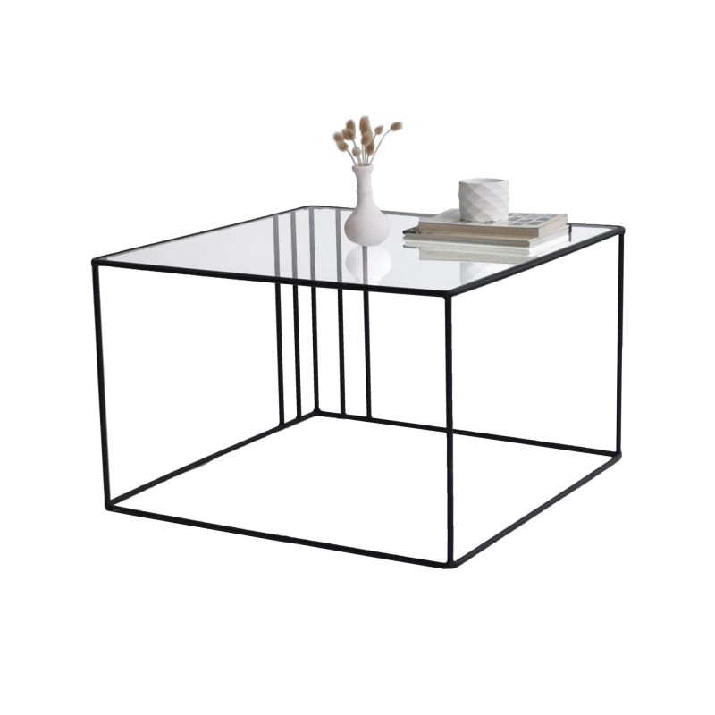 Τραπέζι σαλονιού Outline μαύρο μεταλλικό πλαίσιο γυάλινη επιφάνεια 55x55x36εκ ed952