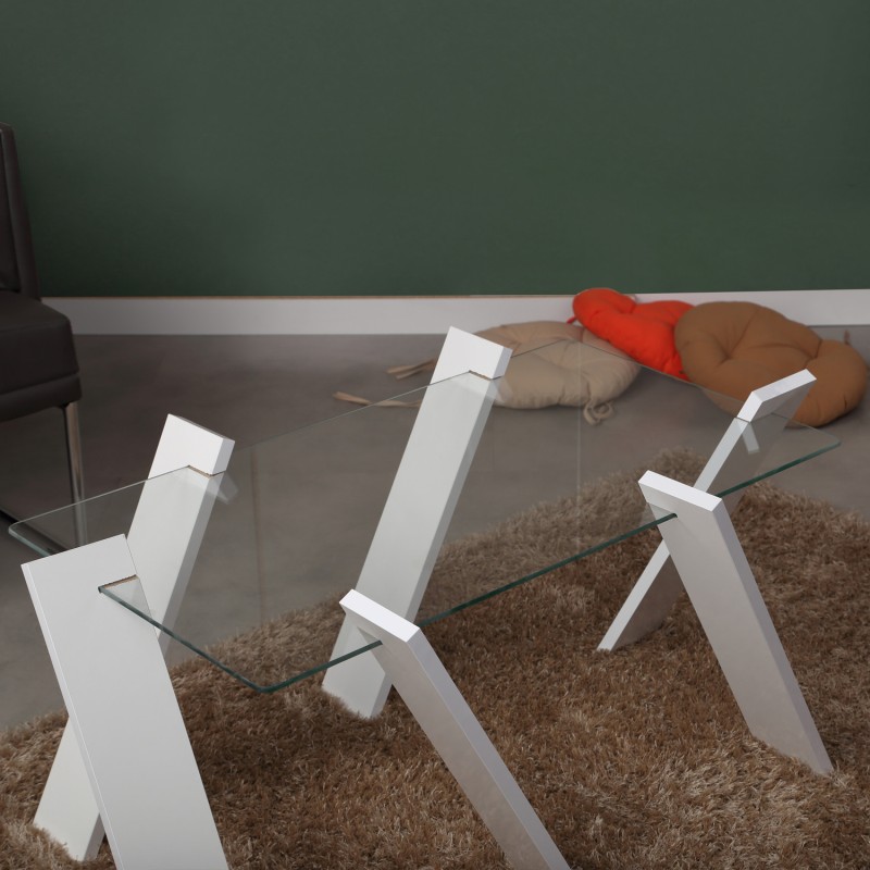 Τραπέζι σαλονιού Roman Maxi άσπρο μελαμίνη επιφάνεια γυάλι 92x57x41εκ ed7039