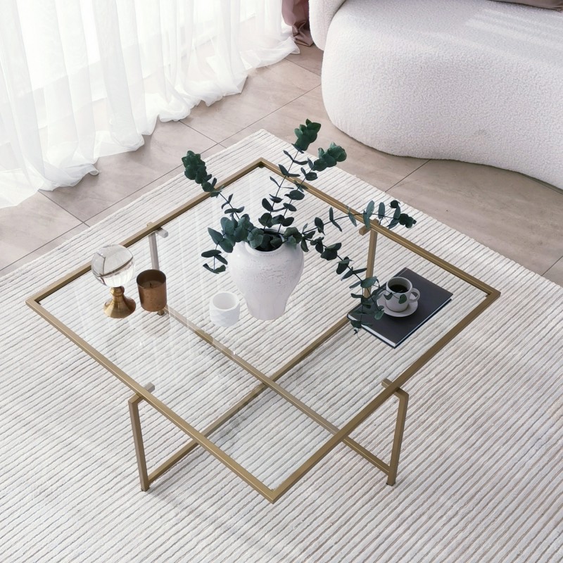 Τραπέζι σαλονιού Sun χρυσό μεταλλικός σκελετός επιφάνεια γυαλί 85x85x35εκ ed2641
