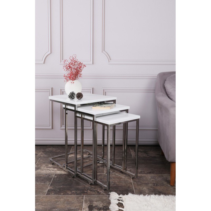 Τραπέζια σαλονιού σετ 3 τεμάχια Zigon 41x46cm μέταλλο mdf