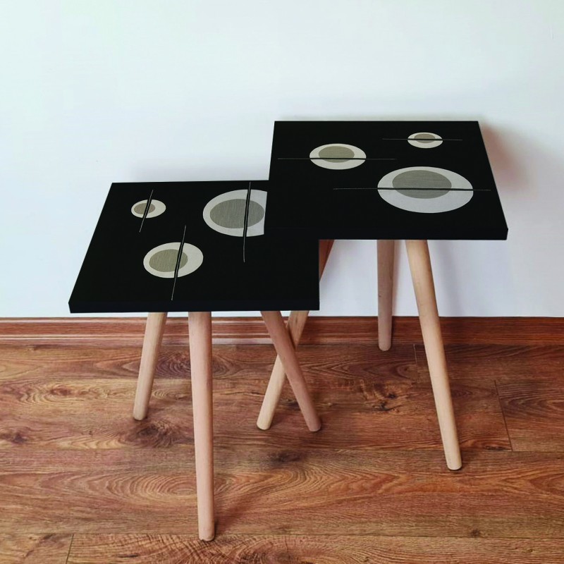 Τραπέζια βοηθητικά Shape σαλονιού 2 τεμάχια μαύρο μπεζ γκρι MDF ξύλινα πόδια 35x47cm