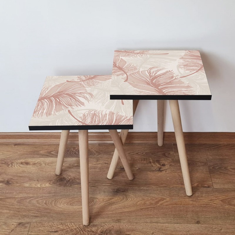 Τραπέζια βοηθητικά Shape σαλονιού 2 τεμάχια μπεζ ροζ MDF ξύλινα πόδια 35x47cm