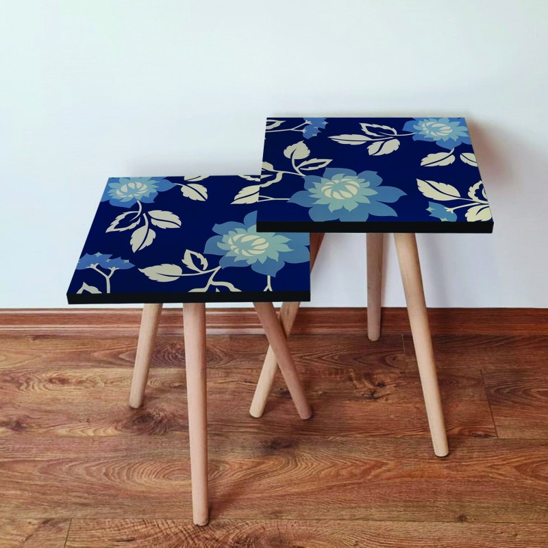 Τραπέζια βοηθητικά Shape σαλονιού 2 τεμάχια navy blue μπλε μπεζ MDF ξύλινα πόδια 35x47cm