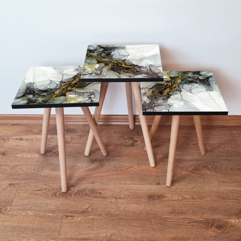 Τραπέζια βοηθητικά Shape σαλονιού 3 τεμάχια άσπρο γκρι χρυσό μουσταρδί MDF ξύλινα πόδια 35x52cm