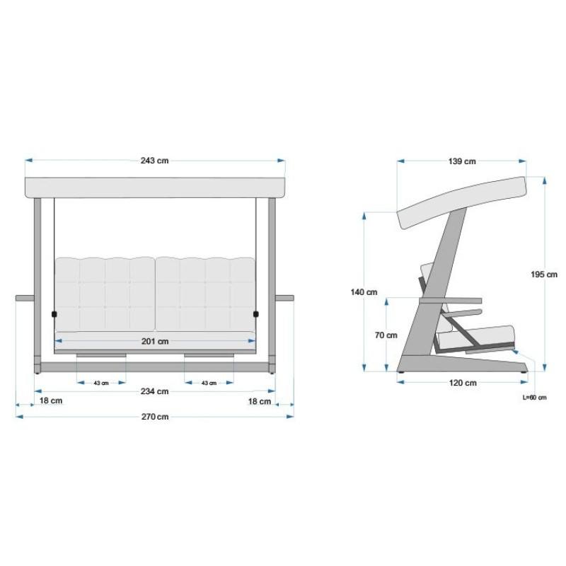 Μέγεθος καρέκλας: Πλάτος: 270 cm Ύψος: 195 cm Βάθος: 120 cm