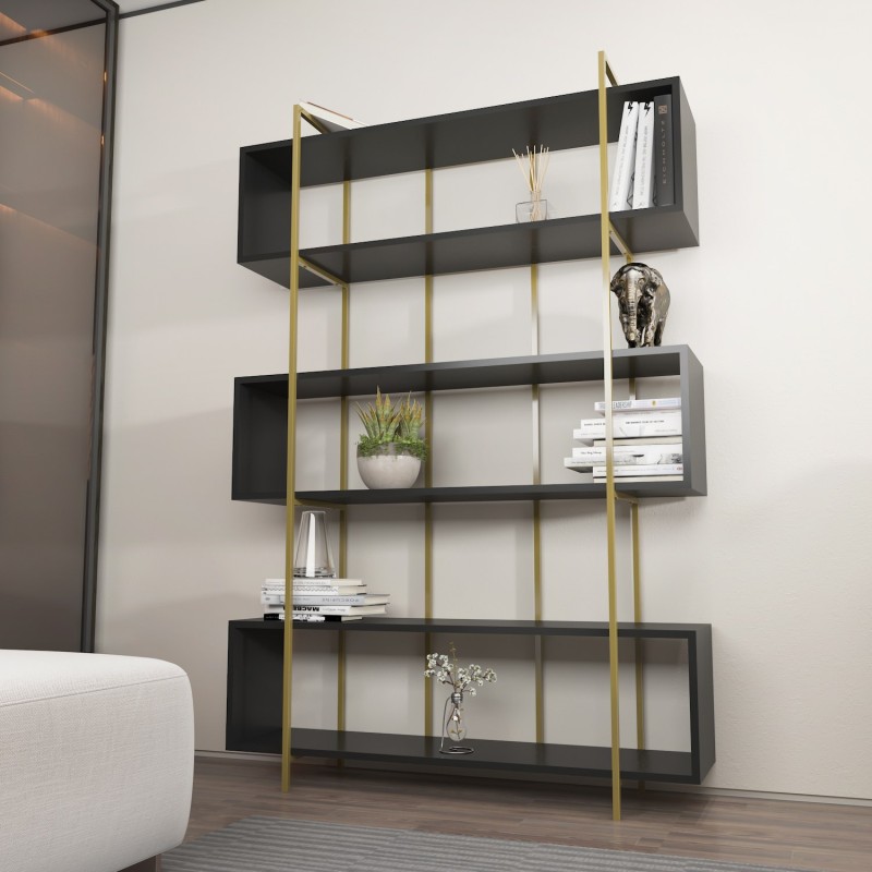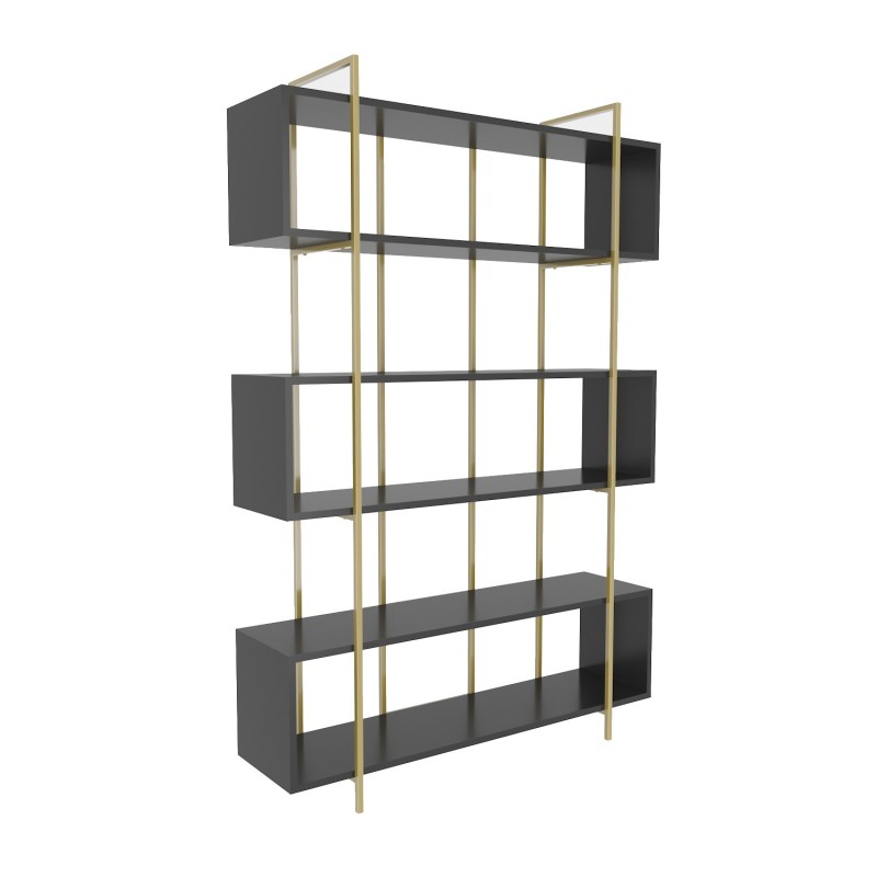 Βιβλιοθήκη Bruti ανθρακί χρυσό μελαμίνη 120×29 6×180εκ ed16832