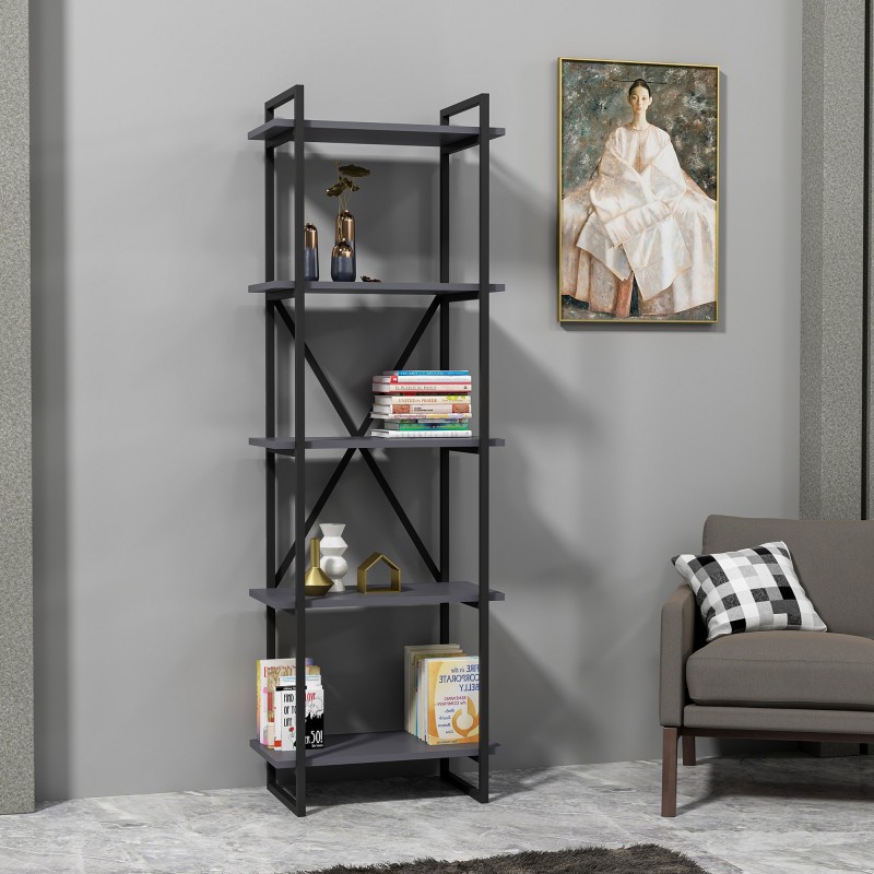 Βιβλιοθήκη Elston μαύρο ανθρακί μελαμίνη 60x34x180εκ ed14027