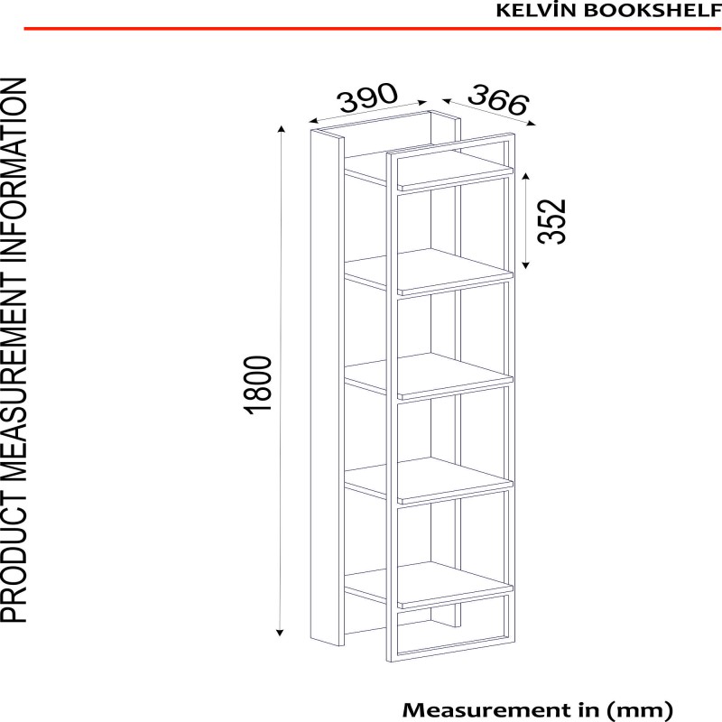 Βιβλιοθήκη Kelvin καρυδί μαύρο μελαμίνη μεταλλικος σκελετός 39×36 6×180εκ ed993