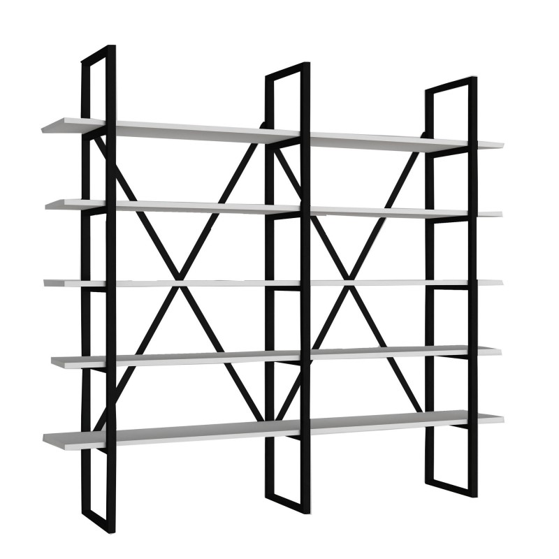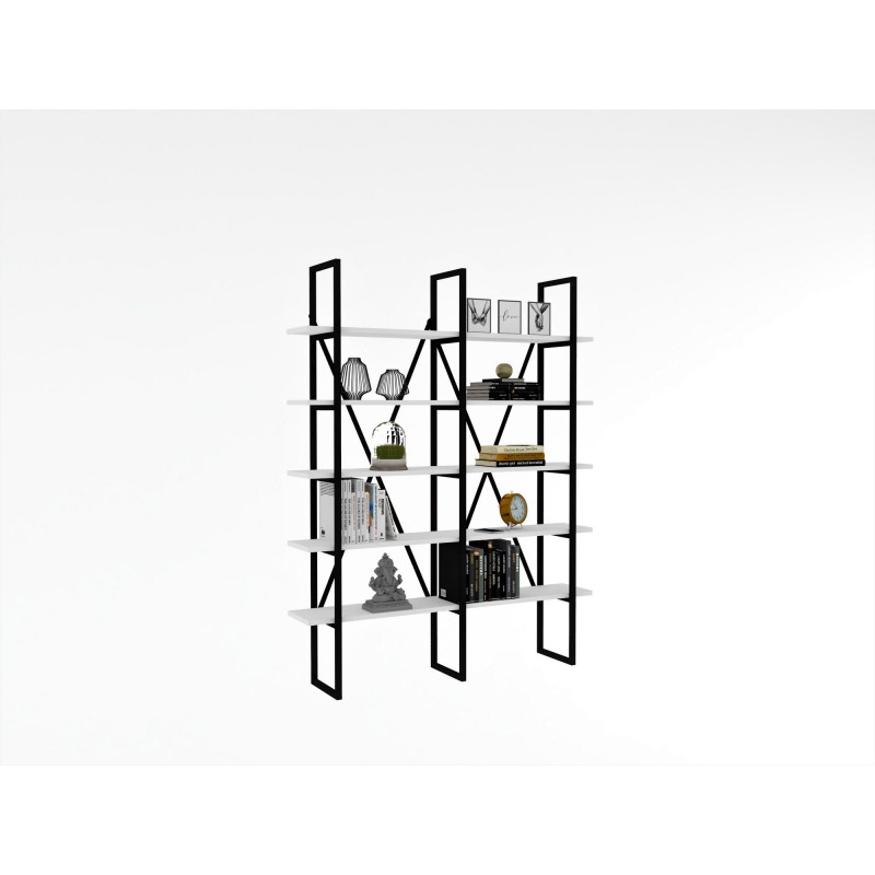 Βιβλιοθήκη Kinali άσπρο μαύρο μελαμίνη μεταλλικό πλαίσιο 126x26x160εκ ed5672