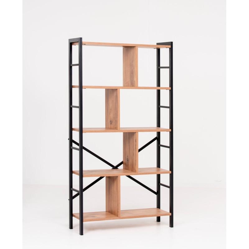 Βιβλιοθήκη Seul καφέ μαύρο μελαμίνη μεταλλικό πλαίσιο 78x26x150εκ ed6442