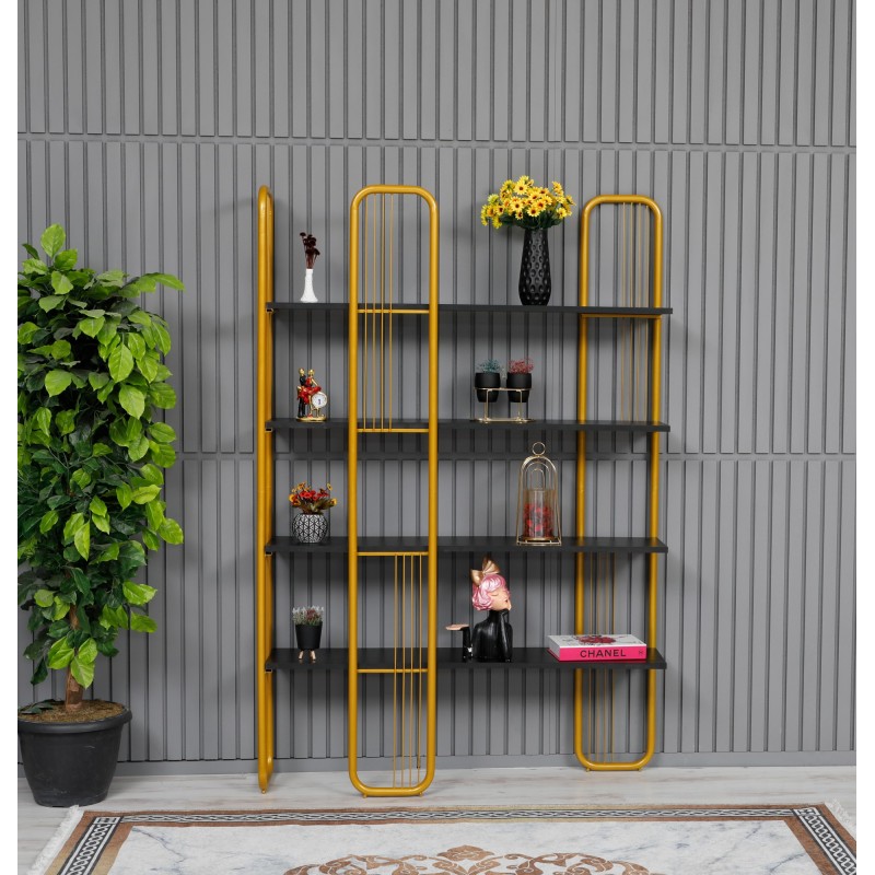 Βιβλιοθήκη Sierra μαύρο χρυσό μελαμίνη μεταλλικό πλαίσιο 125x28x180εκ ed16612