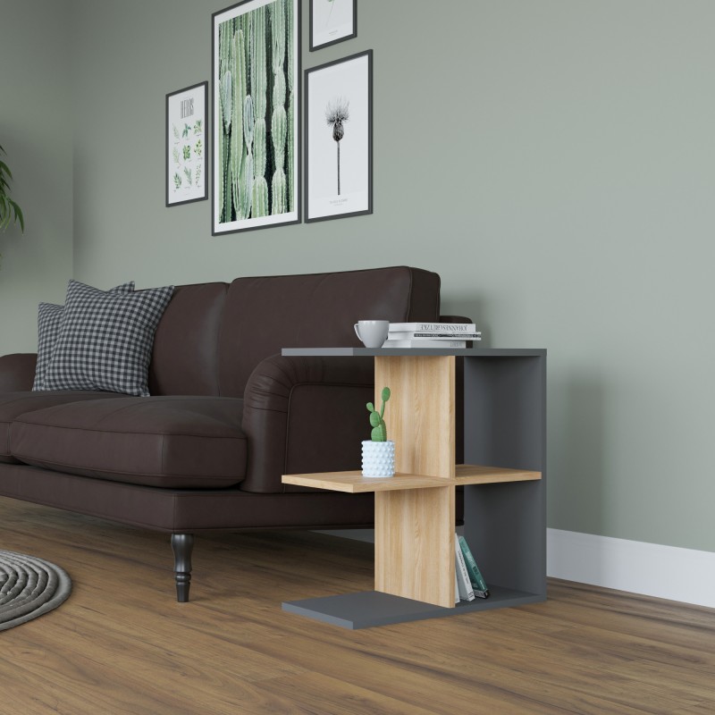 Βοηθητικό τραπεζάκι Hamlet oak ανθρακί μελαμίνη 59 6×29 6×63 2cm ed8068