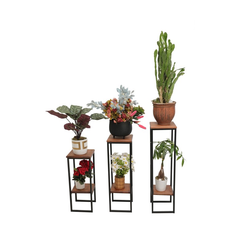 Βοηθητικό τραπέζι σετ 3 τμχ δρυς ξύλο μέταλλο 24x24x90εκ ed10352